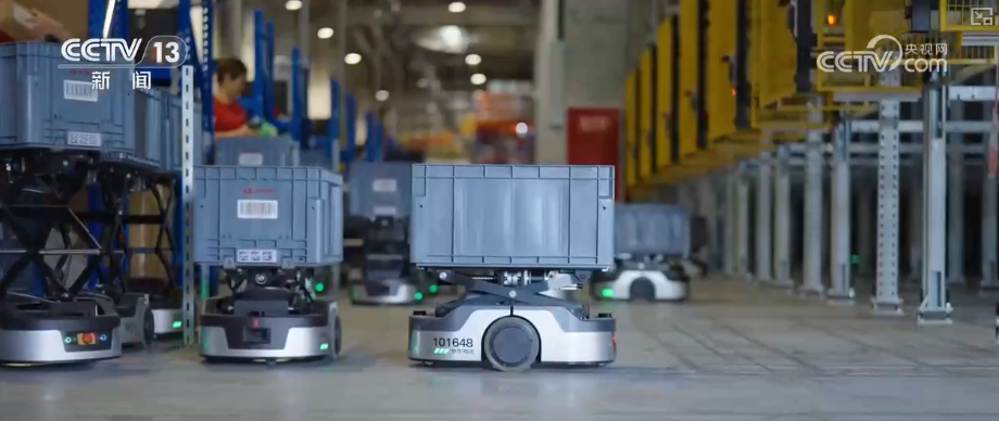 “聪慧仓运维员”王实引见,保守的物流仓人都要推着一个小车四处去找货,现正在这个料箱很是聪慧,哪个商品需要它,来到挑撰人员的跟前,间接把货拿出来。他们通过一些智能的安排算法,让大车小车可以或许协同,物流效率提拔两三倍。